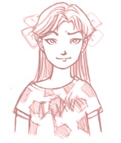 Daí, eu estava brincando com o primeiro desenho, rabiscando um cabelo ali, um laço acolá... e deu nisso aí: